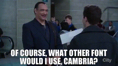 But Cambria, unfortunately, doesn’t fit for every application. I wouldn’t use Cambria on a new logo design for West Elm. The brand seems to stick with a Helvetica-esque font and a serif font would not agree with their advertising. It is more and more accepted for papers and the like, but I hope that one day it will overthrown the tyrannical grip that Times New Roman has over the academic and scholarly communities.
